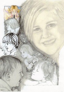 Okay – the first thing to know is – when i got the manuscript, the story was about a little girl and her mom. In other words – Kate and her family and neighbors were human, so that was how i originally intended to portray them. Of course i still wanted to give the illustrations an interesting twist and i started thinking about what sort of family this could be, maybe an ethnic look or an unexpected locale. That segued into finding reference photos, because i have learned from experience, if you are going to draw a sustained human character throughout a series of illustrations it helps – A LOT – to have pictures of a real person, preferably showing different facial expressions and poses. Somewhere in this process i started imaging the characters as animals and, next thing you know, i saw Kate as a bunny.